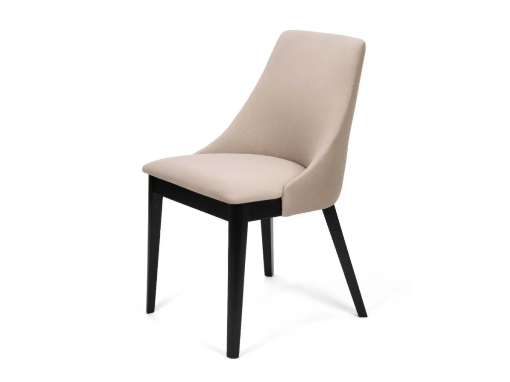 Moderní buková židle s čalouněným sedákem a opěrákem. Pevná konstrukce židle umožňuje využití také v komerčních prostorách.