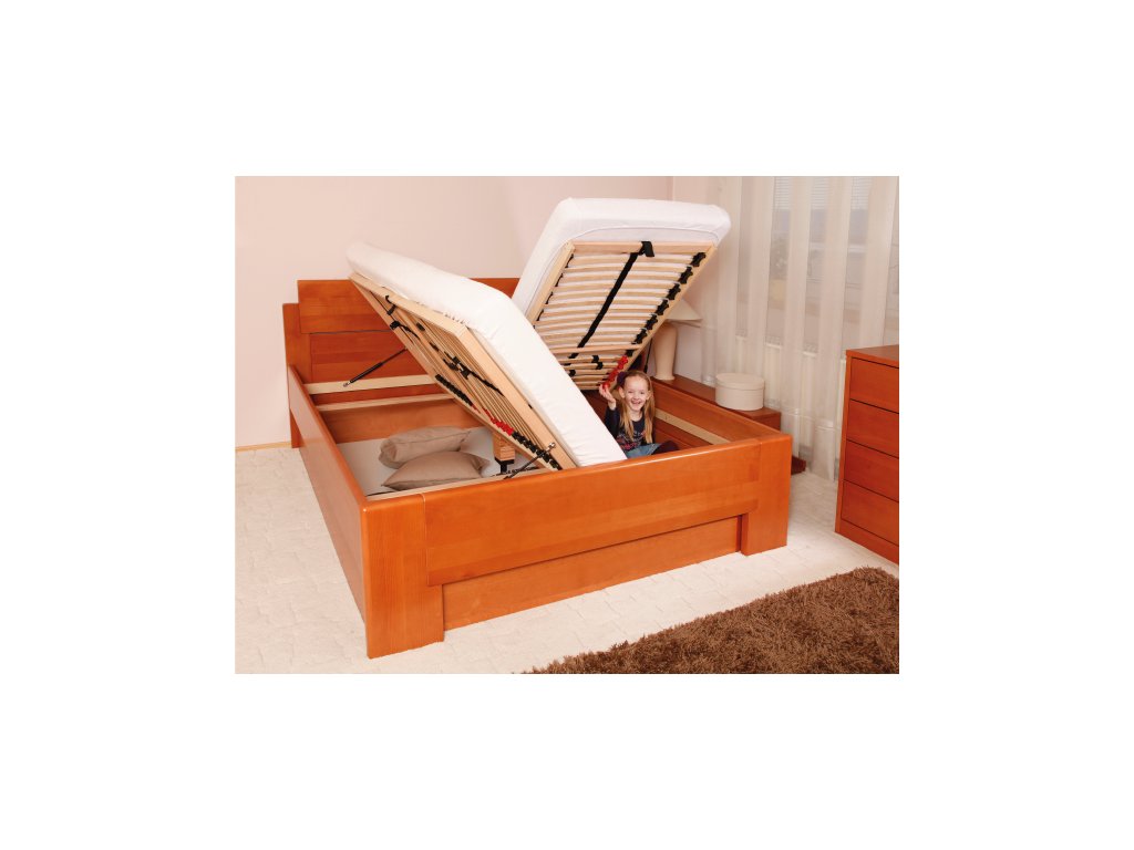 Postel DeLuxe 1 je vyrobena z masivního buku s možností moření. K posteli lze přiobjednat tří typy úložných prostorů. Postel se standardně vyrábí ve zvýšené lehací ploše 50 cm ( horní hrana bočnice postele ) pro Vaše pohodlné uléhání a vstávání. Postele lze výrobně za mírný příplatek upravovat dle Vašich požadavků. Materiál : bukový masiv – průběžka ( celistvější vzhled dřeva).