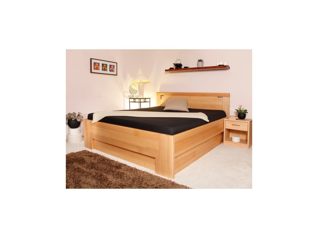Postel DeLuxe 2 je vyrobena z masivního buku s možností moření. K posteli lze přiobjednat tří typy úložných prostorů. Postel se standardně vyrábí ve zvýšené lehací ploše 50 cm ( horní hrana bočnice postele ) pro Vaše pohodlné uléhání a vstávání. Postele lze výrobně za mírný příplatek upravovat dle Vašich požadavků. Materiál : bukový masiv – průběžka ( celistvější vzhled dřeva).