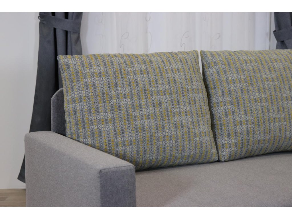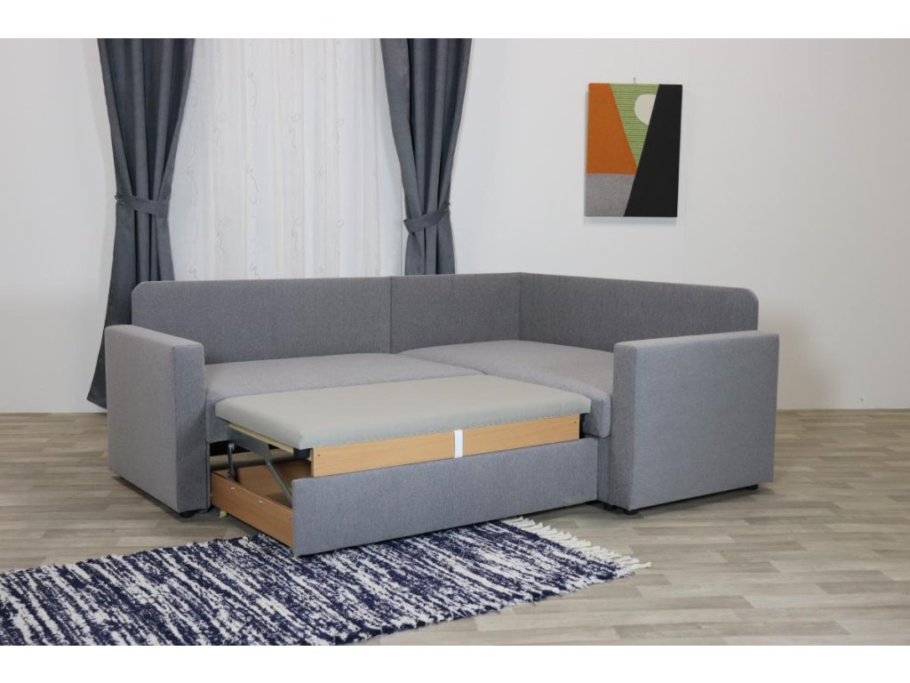 Celočalouněná rohová rozkládací sedací souprava s úložnými prostory a opěradlovými polštáři, vhodná i pro každodenní spaní. Její předností je praktické a jednoduché rozkládání a velký úložný prostor. Sedací soupravu si lze vybrat jak bez područek, tak s područkami, které jsou dodávány ve dvou rozměrových variantách.
