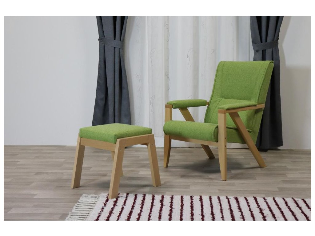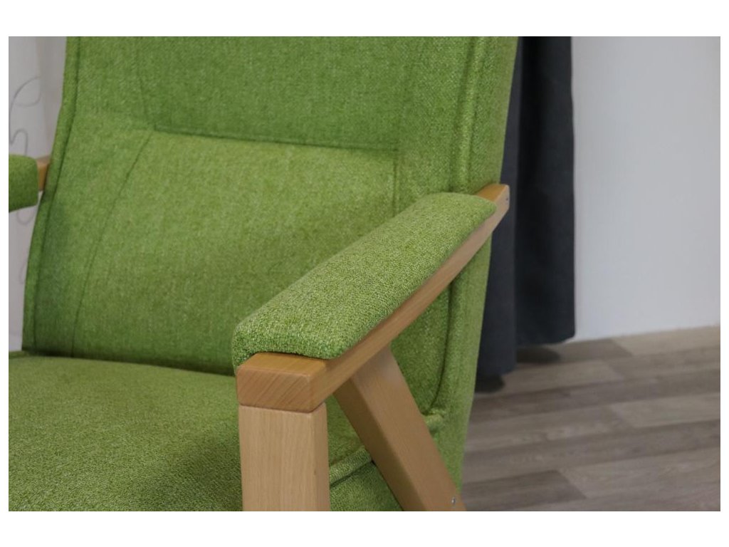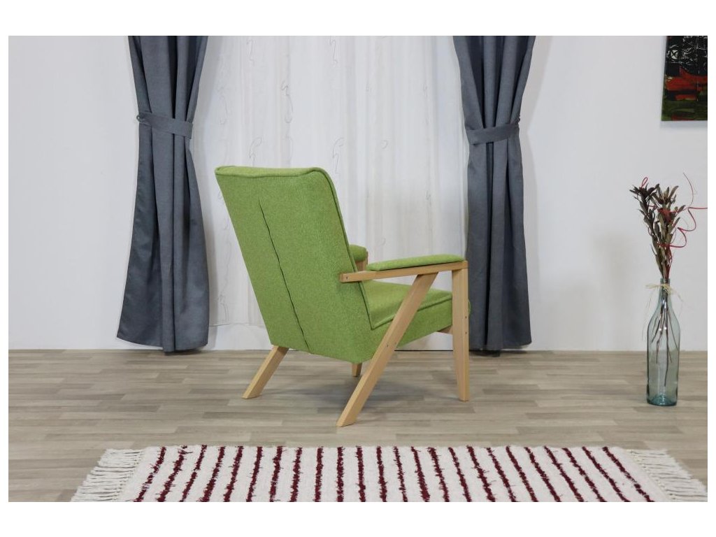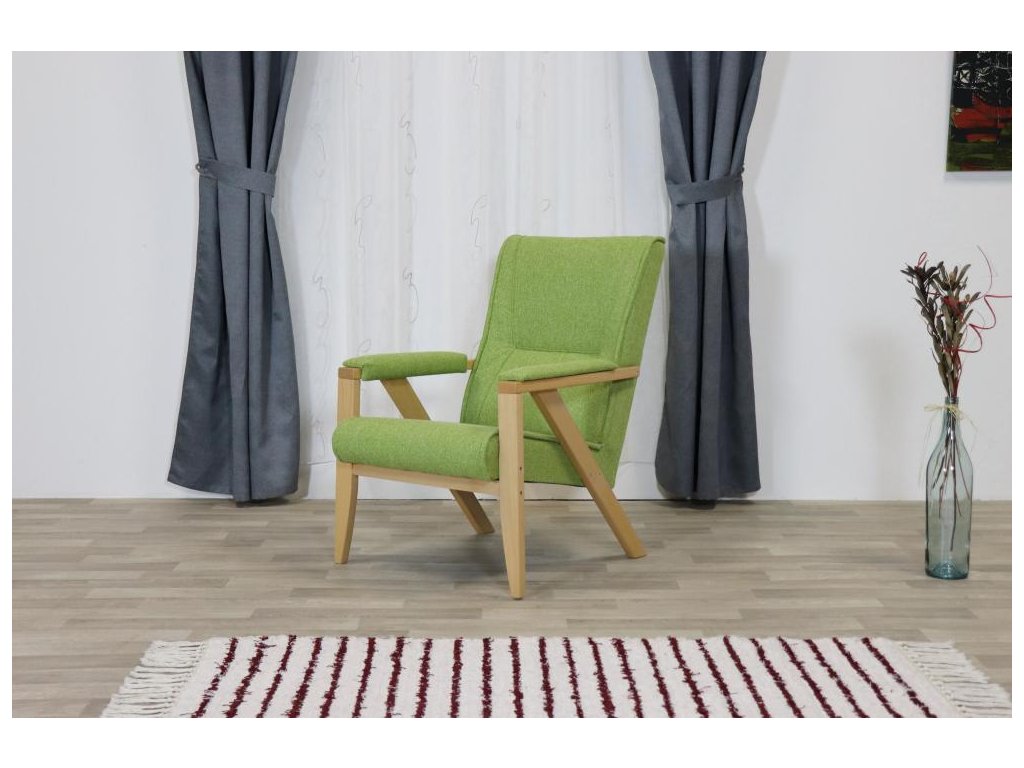 Lehké relaxační čalouněné křeslo s dřevěnou podnoží. Křeslo je vhodné pro domácí použití, hotely, penziony, ubytovací prostory a kanceláře.