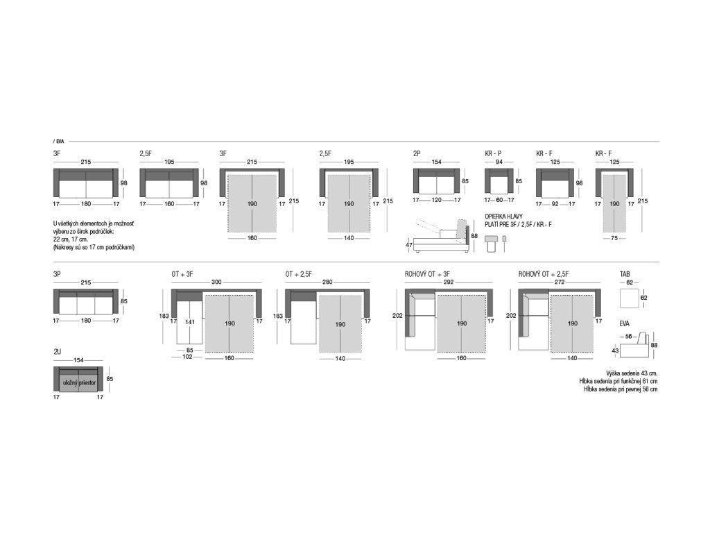 Sedačka EVA si vás získá výbornou ergonomií a propracovaným způsobem roztahování. Sedačku si můžete objednat jako samostatnou trojpohovku nebo dva a pól pohovku spojenou s otomanem (výklopný otoman je s úložným prostorem).