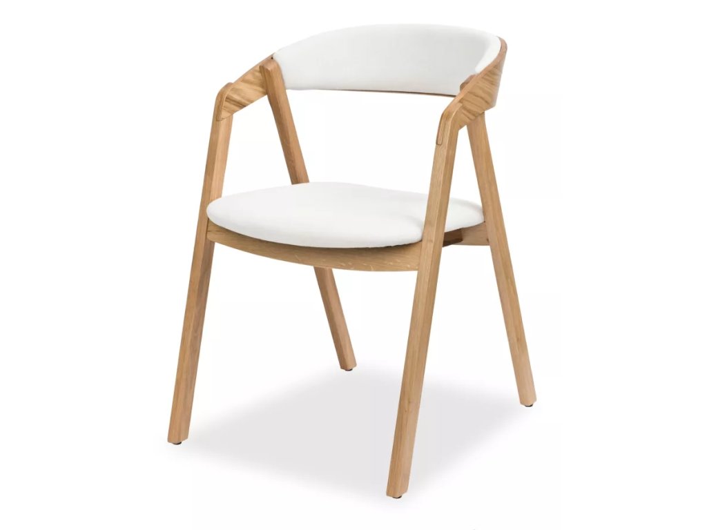 Židle Guru z dubového masivu s čalouněným sedákem a opěrkou. Oproti variantě eko má tento model lepší ergonomii díky větší šířce a hloubce sedu. Je lépe zpracovaná v detailech, nemá vidět kolíky a má zaoblenou vrchní část nohy, která vás při sedu nebude tlačit.