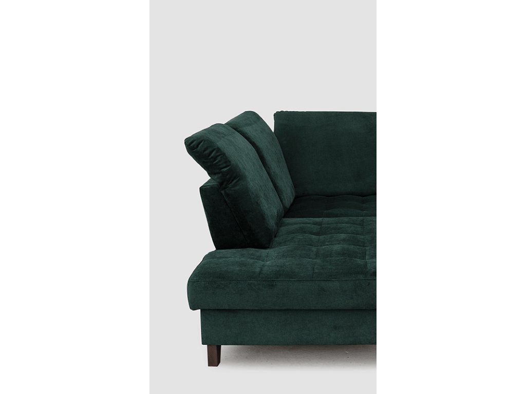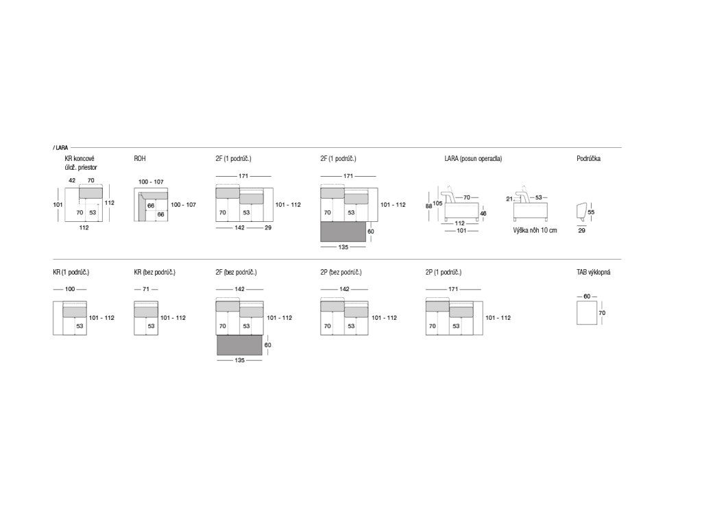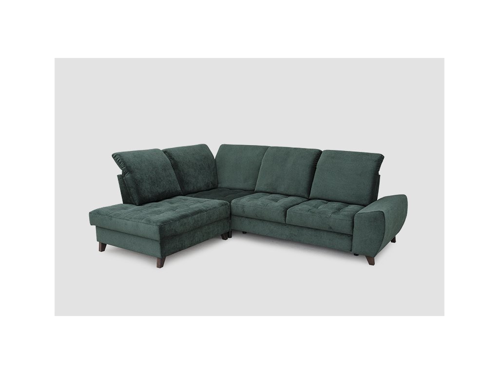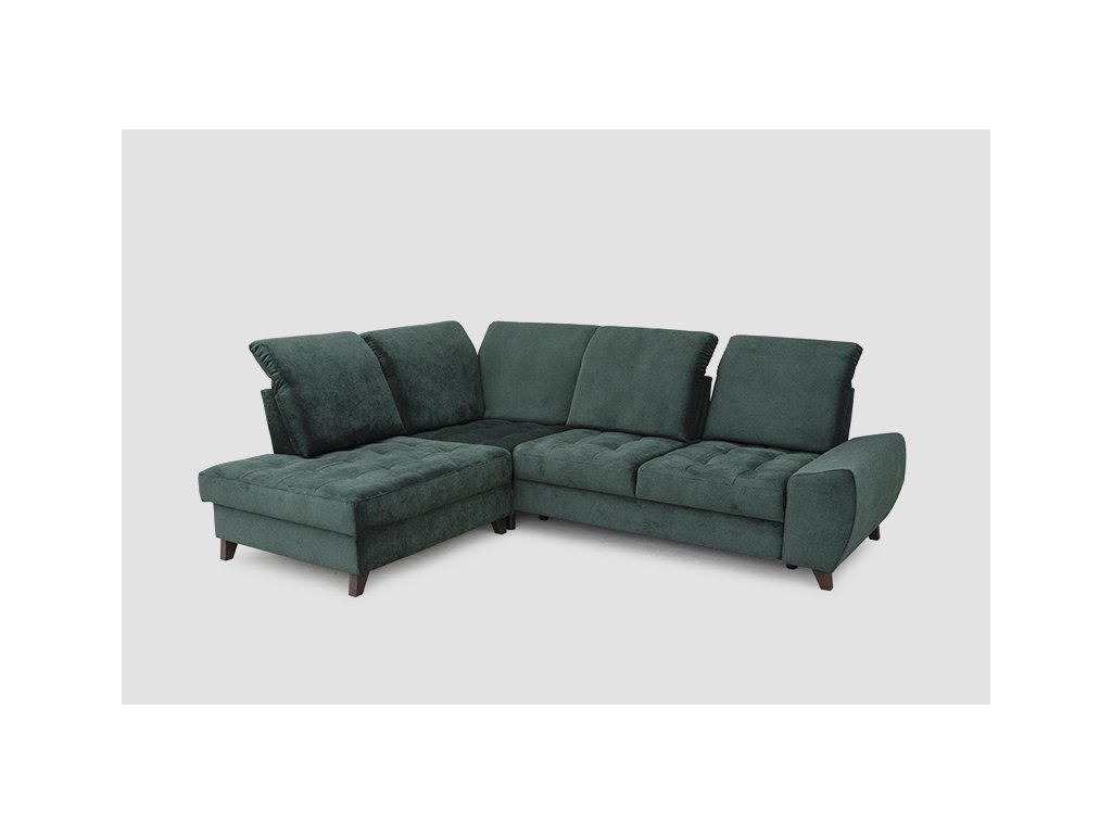 Rohová sedací souprava s možností úpravy hloubky sezení posunutím opěradla na elementu 2F a křesle koncovém. Všechny elementy mají polohovatelné opěrky hlavy. Sedací souprava je určena pro příležitostné spaní a v křesle koncovém se nachází úložný prostor.