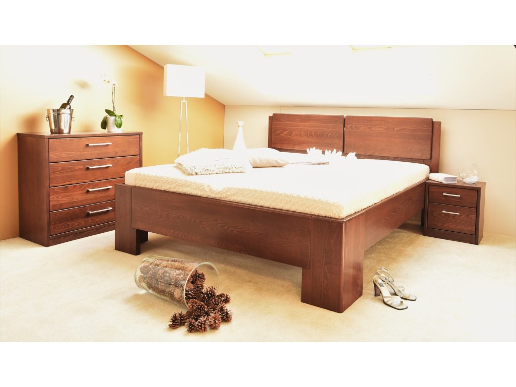 - tloušťka masivu – přední čelo, boční a zadní nohy jsou vyrobeny z masivu o tloušťce 40 mm, postranice postele, výplň zadního čela jsou vyrobeny z tloušťky 30 mm