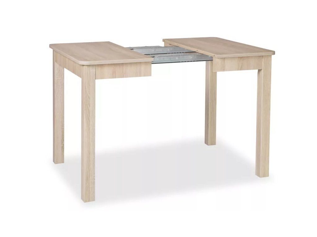 Rozklad vložením středové desky zvětší stůl o 40 cm na délku, noha stolu se při rozkládání posunuje.