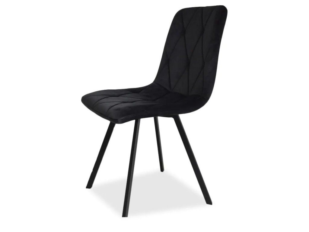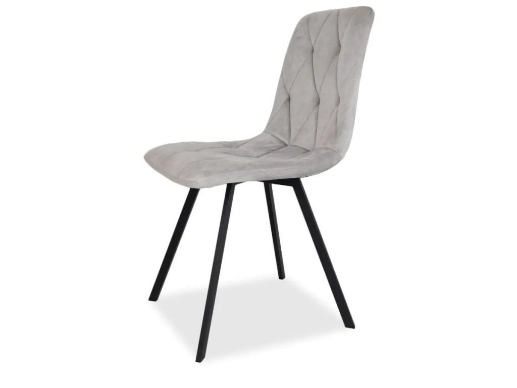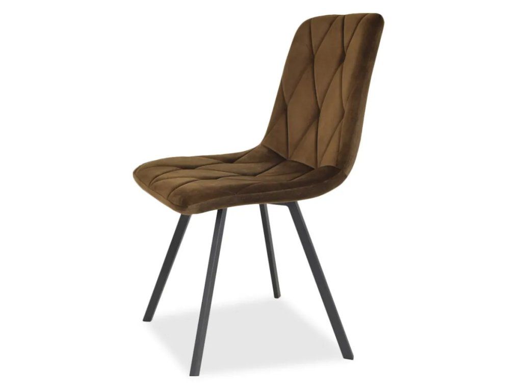 Moderní židle s polstrovanou skořepinou a černou kovovou podnoží.