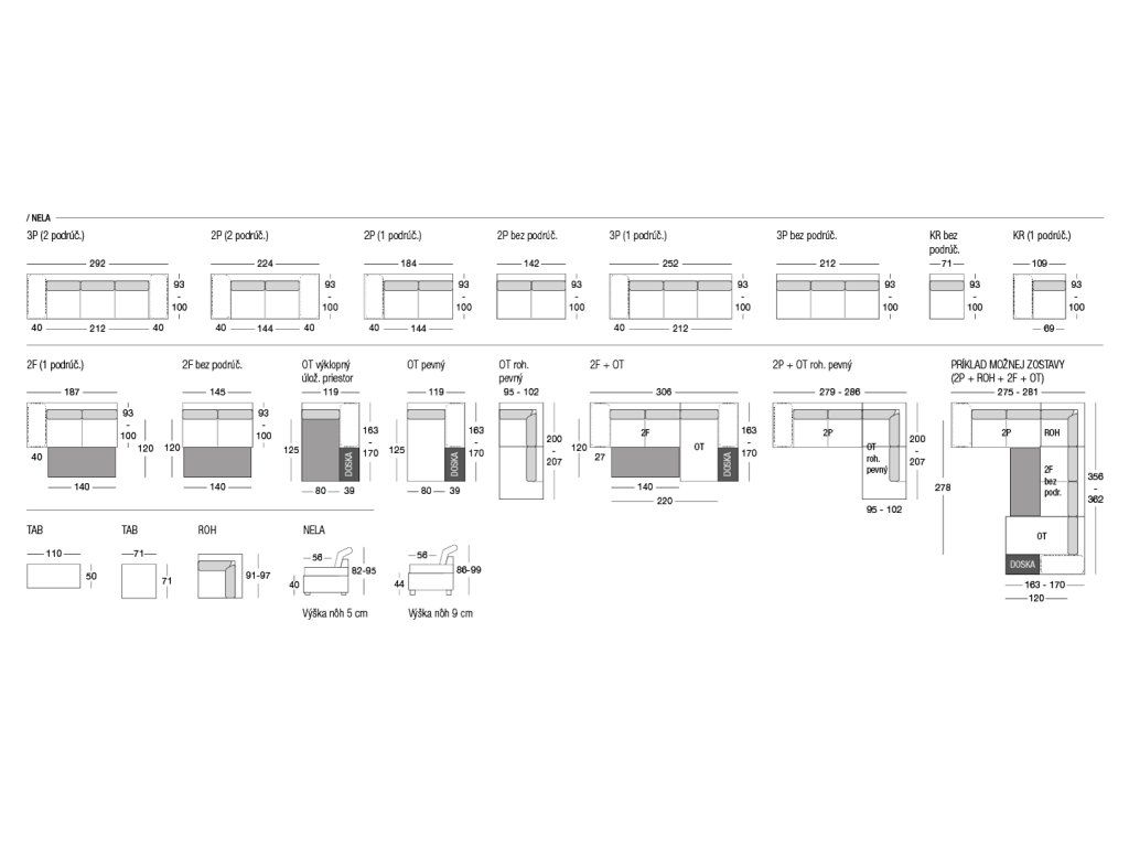 Moderní sedací souprava Nela nabízí polohovatelná opěradla a nastavitelnou opěrku rukou pro maximální pohodlí. Navíc je možné ji přizpůsobit vašim potřebám a prostoru.