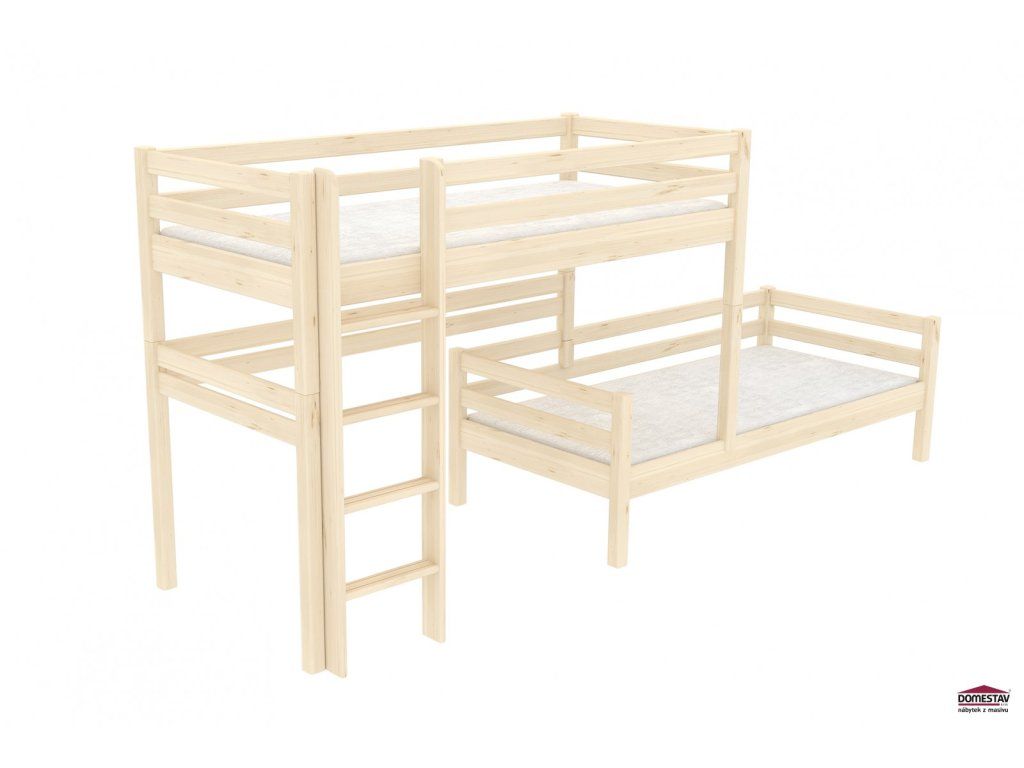 Palanda nízká posuvná smrk je ideálním řešením pro menší pokoje, poskytující dvě postele a možnost vysunout spodní lůžko. Variabilní design zahrnuje volbu žebříku a možnost rozložení na dvě samostatné postele.
