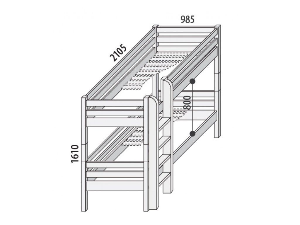 Palanda nízká smrk je ideálním řešením pro malý pokojíček, nabízí 2 postele s možností volby žebříku a vnitřním rozměrem 90 x 200 cm.