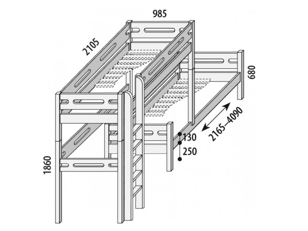 Hledáte ideální řešení pro spaní dvou dětí v malém pokoji? Palanda posuvná Bubliny buk cink je perfektní volbou, která šetří prostor a nabízí praktické funkce. Tato nízká palanda disponuje dvěma postelemi umístěnými přímo nad sebou, což je skvělým způsobem, jak efektivně využít prostor v dětském pokoji. Spodní lůžko můžete libovolně vysunout, což zvyšuje flexibilitu a usnadňuje přístup. Bezpečnostní zábrana na horní posteli a volitelný žebřík (svislý nebo šikmý) zajišťují, že spaní je nejen pohodlné, ale i bezpečné.