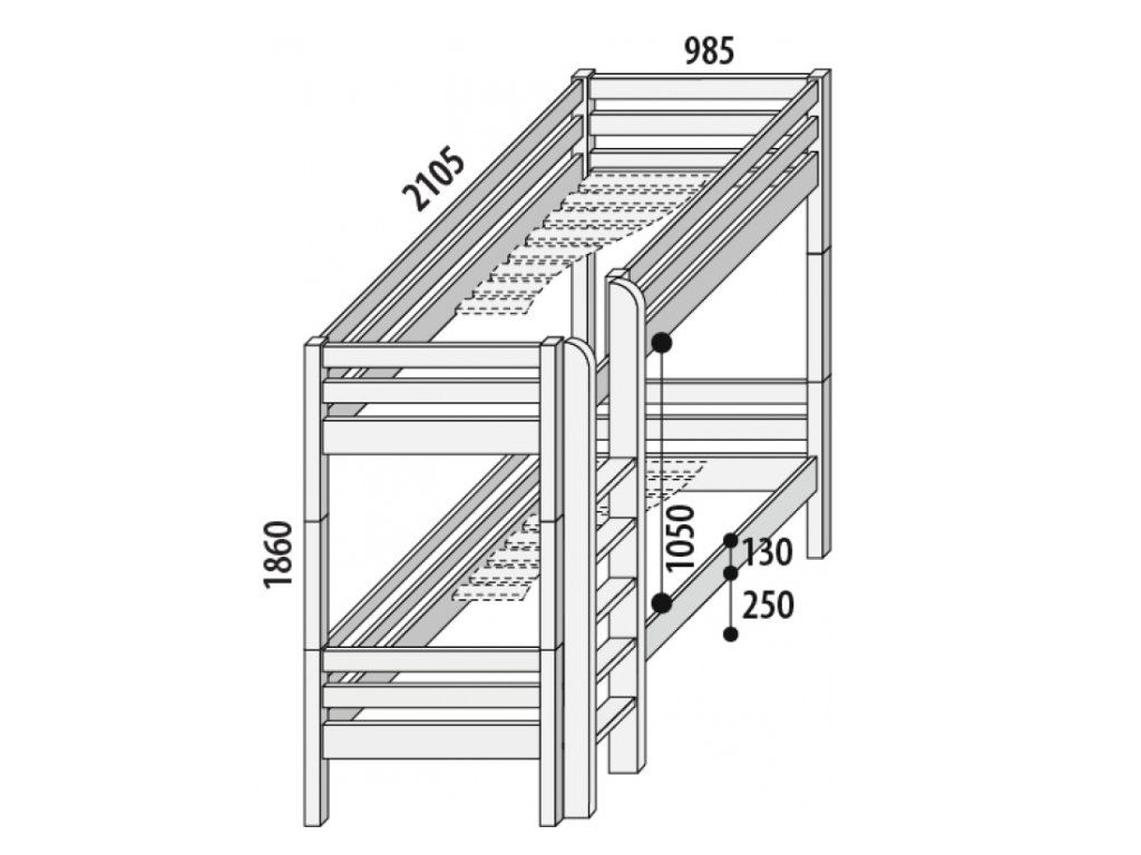 Palanda SMRK je velmi variabilní a v budoucnu ji můžete snadno rozložit na dvě samostatné postele, což z ní činí dlouhodobou investici. Vyberte si mezi svislým a šikmým žebříkem podle vašich potřeb a preferencí, což zvyšuje funkčnost této postele. V případě zájmu je také možné si připlatit za moření, a to ve výši 13%.