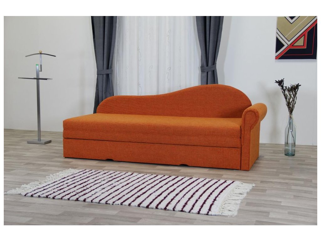 Čalouněná rozkládací pohovka s úložným prostorem. Pohovka má praktické a jednoduché rozkládání. Lehací plocha se vytvoří vytažením šuplíku a překlopením matrace. Opěradlové polštáře jsou vhodné pro dlouhodobé sezení.
