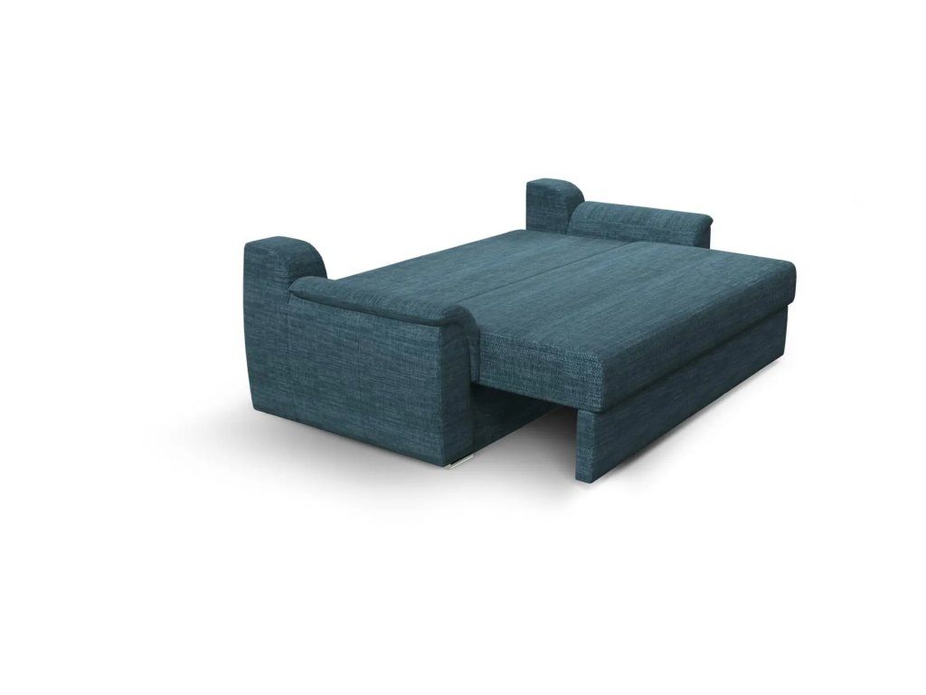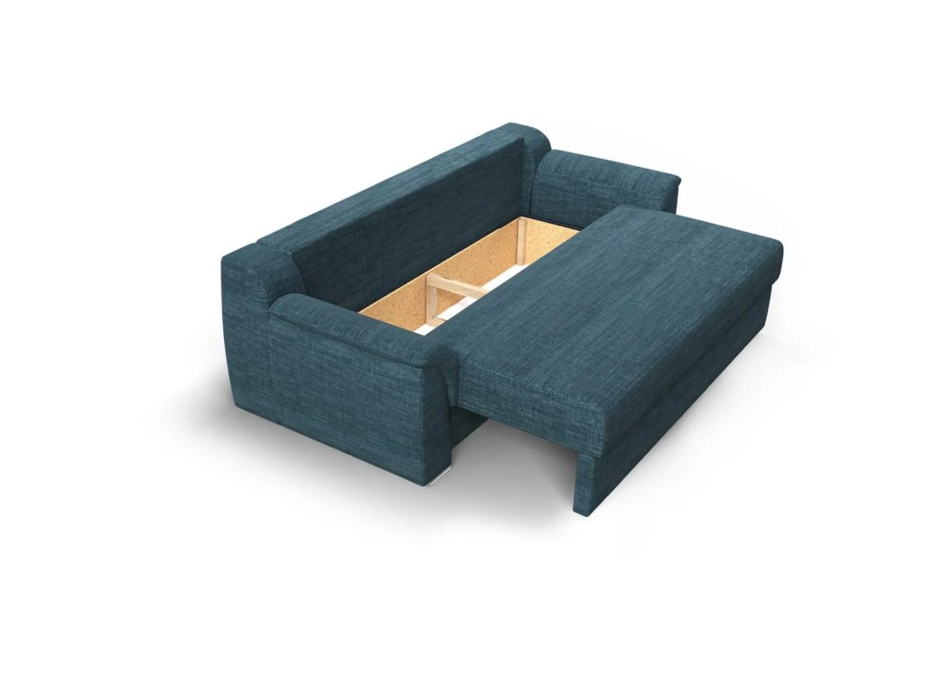V korpusu pohovky se nachází praktický úložný prostor, ideální pro uskladnění ložního prádla či jiných předmětů. Sedací a zádová část využívá systém dvojitého pružení na vlnovci a taštičkové matrace, čímž zaručuje dlouhodobý komfort při sezení a spánku. Pohovka je postavena na masivní dřevěné kostře s nohama vysokými 10 cm, což zvyšuje stabilitu a odolnost.
