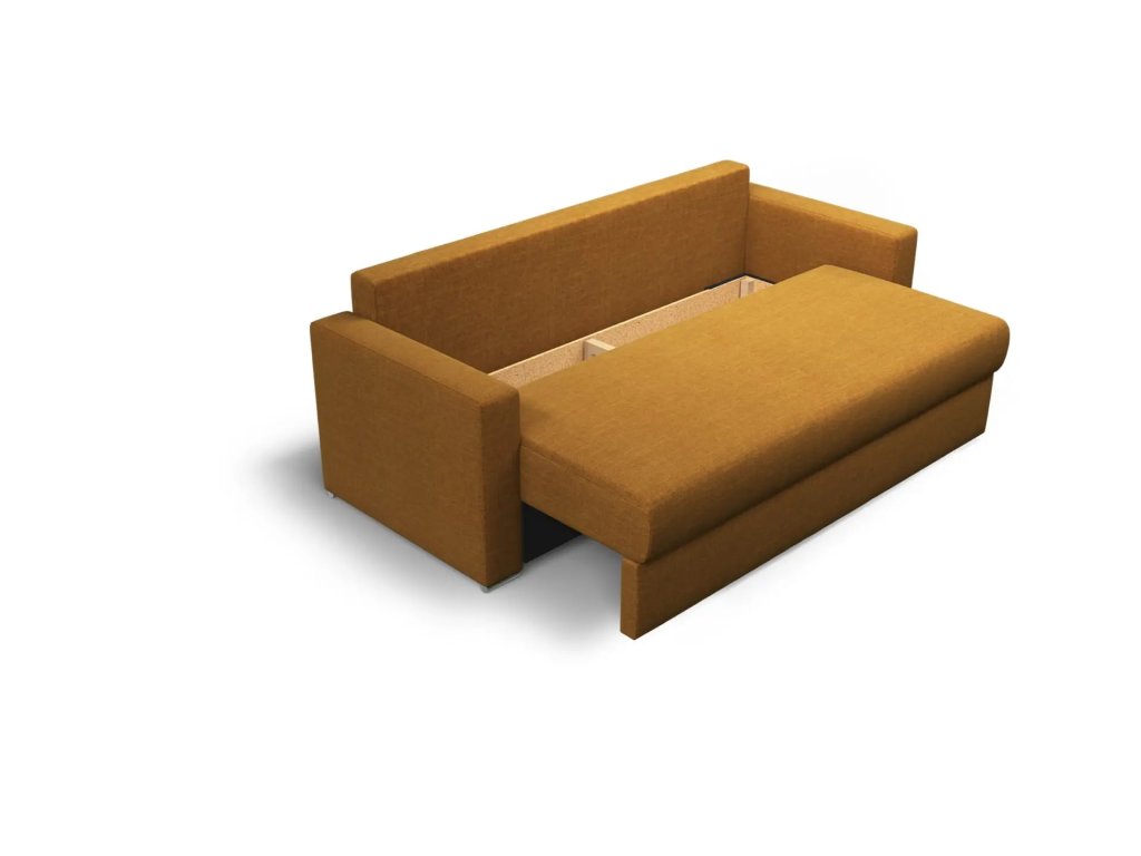 V korpusu pohovky se nachází praktický úložný prostor, ideální pro uložení ložního prádla nebo dalších potřeb. Sedací a zádová část pohovky využívá dvojitý systém pružení s vlnovcem a taštičkovou matrací, která poskytuje maximální komfort při sezení i spaní a zaručuje dlouhou životnost. Masivní dřevěná kostra je odolná a stabilní, přičemž záruka na kostru trvá až 4 roky.