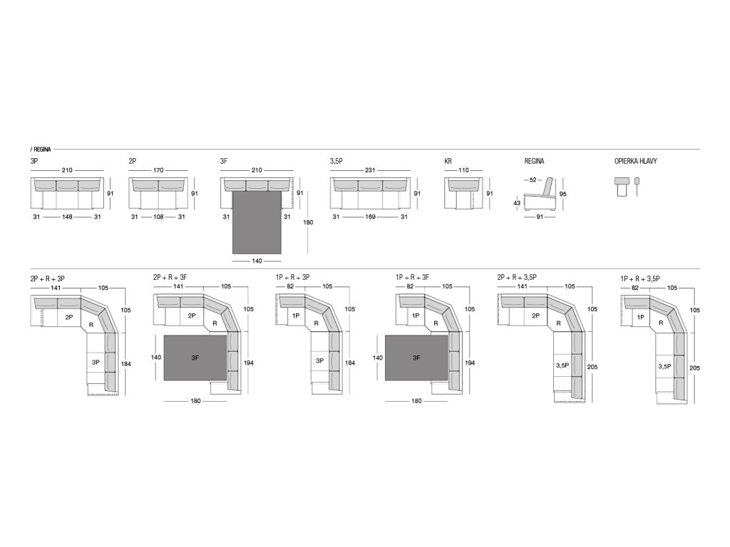 Sedací souprava Regina - klasické proporce, lůžko 180 x 140 cm