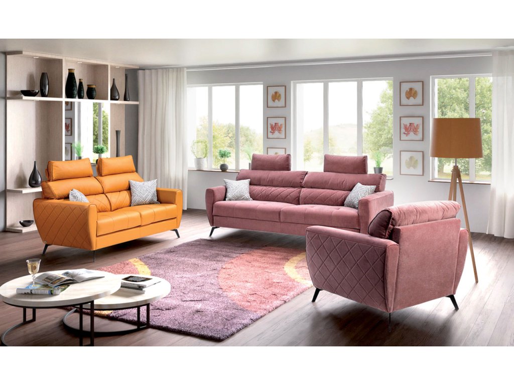 - Čalounění: Dostupné v široké nabídce kůží, látek a jejich barevných variací