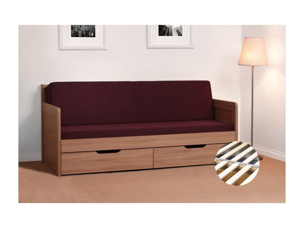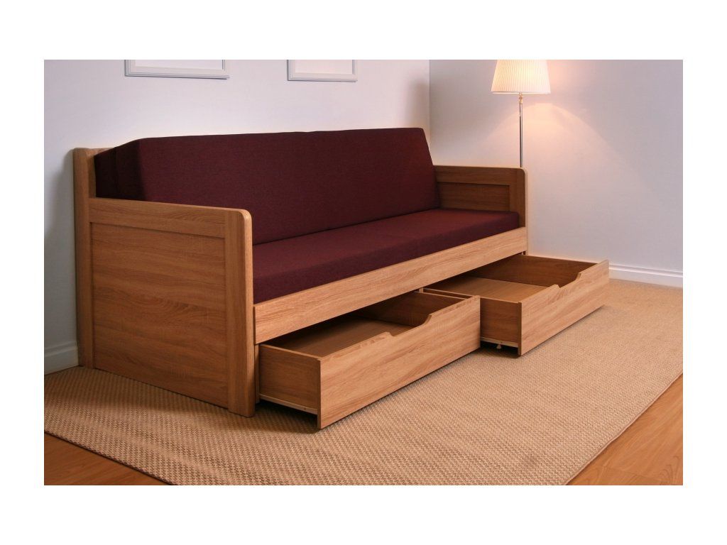 Rozkládací postel Klasik nabízí velký úložný prostor v podobě dvou oddělených zásuvek, které se dají nezávisle na sobě lehce a jednoduše vysouvat.
