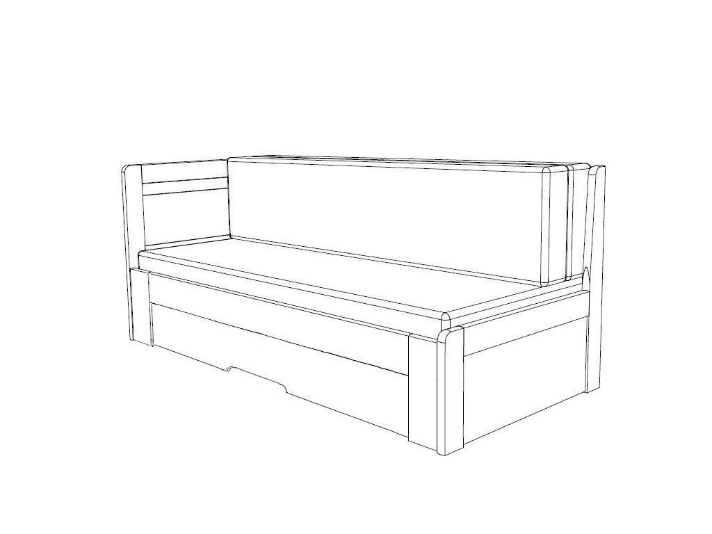 - rovné provedení – krajní rohy na bočních a zadních čelech postele jsou rovné