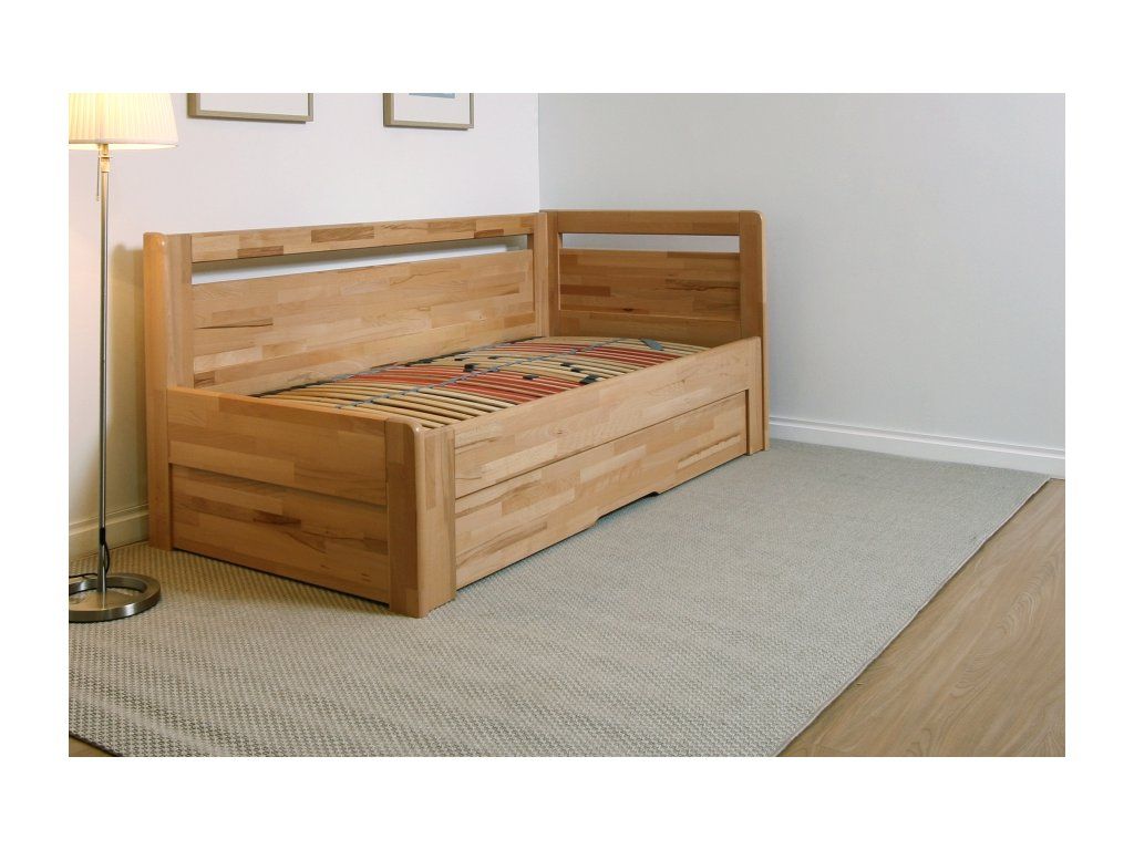 Postele řady tandem ortho nabízí propracovaný systém rozkládání za pomocí dvou standardních lamelových roštů. Velkou výhodou je možnost použití také polohovatelných roštů.