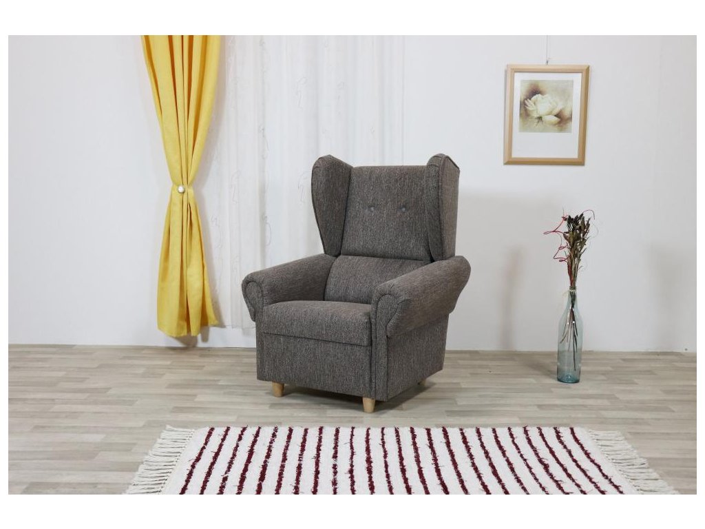 Celočalouněné křeslo ušák klasického vzhledu, rozměry 86x90x113 cm, masivní nohy